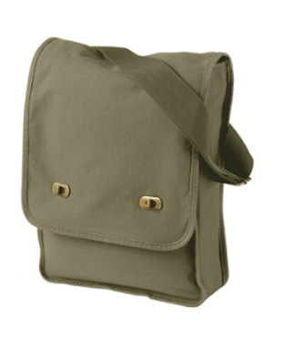 Denim, goldenrod, khaki green, poppy, smoke, putty 12" x 16" Qty Price SetUp Ship Total 25 $20.33 $30.00 $10.00 $548.20 50 $20.05 $30.00 $18.00 $1050.32 144 $19.46 $30.00 $80.00 $2911.78 288 $18.86 $30.00 $144.00 $5605.82 Field Bag, washed canvas, brass buckles, embroidered
