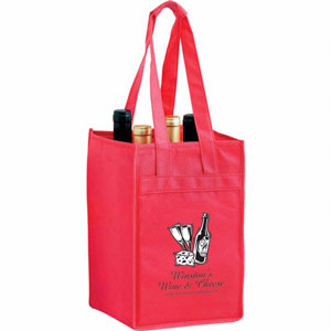 built-in dividers. Black, red, royal, burgundy, tan.Qty Price SetUp Ship Total 100 $2.54 $50.00 $18.00 $321.98 500 $2.45 $50.00 $36.00 $1310.00 1000 $2.37 $50.00 $72.00 $2493.50 3000 $2.30 $50.00 $210.00 $7145.00 4 Wine Bottle Bag, non woven poly. 7" x 7" x 11"