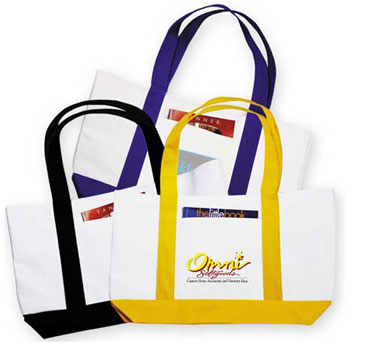 White with yellow, royal, green, red, maroon, purple, orange, black trim Qty Price SetUp Ship Total 100 $4.64 $50.00 $60.00 $574.07 500 $4.49 $50.00 $301.00 $2596.50 1000 $4.34 $50.00 $485.00 $4876.30 5000 $4.22 $50.00 $3005.00 $24162.70 Tote Bag, Poly canvas, 18" x 11" x 4"