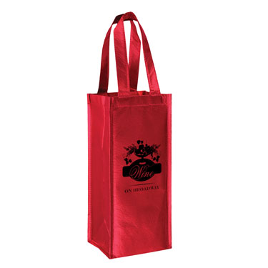 Non-Woven Wine Tote Bag, MEtalic red ot Blue Qty Price SetUp Ship Total 100 $2.20 $50.00 $18.00 $287.99 300 $2.11 $50.00 $36.00 $719.60 500 $2.05 $50.00 $72.00 $1145.00 1000 $1.98 $50.00 $210.00 $2240.00 Metallic Vineyard Collection-1 Bottle Laminated