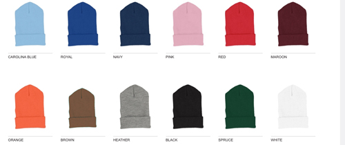 Black, grey, navy, Carolina blue, gold, red, brown, spruce.