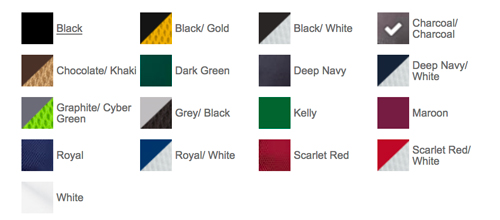 Black, Black/Gold, Black/White, Charcoal/, Chocolate/Khaki, Dark Green, Deep Navy, Deep Navy/White, Kelly, Maroon, Royal, Royal/White, Scarlet Red, Scarlet Red/White, White , S/M(6 7/8 - 7 1/4), M/L(7 1/8 - 7 1/2), L/XL (7 3/8 - 7 3/4)