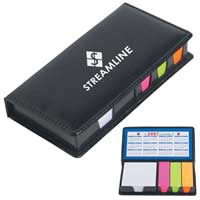 Pocket memo book, self-adhesive note pad, 3''x 3'', 5 pastel color flags, 25 sheets & flags. Tuck closure. Die cut holes on reveal pastel flags. Cover recycled. Qty Price SetUp Ship Total 250 $0.81 $55.00 $25.00 $283.28 500 $0.77 $55.00 $50.00 $489.98 1000 $0.71 $55.00 $100.00 $861.86 2500 $0.66 $55.00 $250.00 $1945.10 Pocket Sticky Note Memo Book