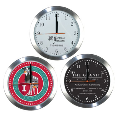 Full 4 Color Process Printing Qty Price SetUp Ship Total 25 $14.84 $80.00 $49.00 $500.10 50 $13.69 $80.00 $98.00 $862.73 100 $13.14 $80.00 $196.00 $1590.47 250 $12.00 $80.00 $491.00 $3569.80 10" Aluminum Frame & Glass Wall Clock