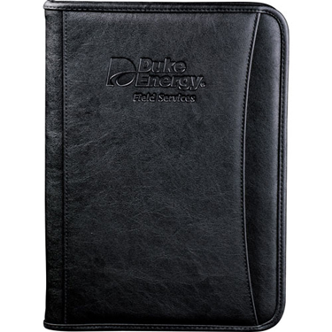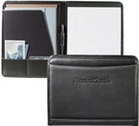 Black, blue or green cover, debossed imprint, 10" x 13" Qty Price SetUp Ship Total 48 $13.67 $62.50 $60.00 $778.71 150 $12.41 $62.50 $175.00 $2099.04 300 $11.66 $62.50 $250.00 $3809.86 600 $11.16 $62.50 $500.00 $7259.58 Writing Pad, leather like, zippered, front pocket, pen