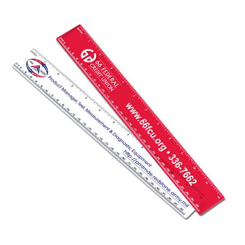 Ruler, 12" x 1-5/8", plastic, solid white, black