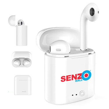 hands free calling & stereo sound. Wireless to 40', 3 hour battery, charging case, tuck box. Your 1 color imprint included. Qty Price SetUp Ship Total 100 $11.86 $40.00 $23.00 $1248.77 300 $10.88 $40.00 $68.00 $3373.08 500 $10.06 $40.00 $115.00 $5183.87 1000 $9.70 $40.00 $230.00 $9972.00 Air-Buds, wireless earbuds, no cords, white