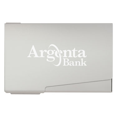 2 card pockets, top currency or card pocket. Laser engraves in white. Qty Price SetUp Ship Total 100 $2.50 $45.00 $15.00 $309.90 250 $2.40 $45.00 $45.00 $690.00 500 $2.30 $45.00 $100.00 $1292.50 1000 $2.20 $45.00 $200.00 $2444.00 Business Card Holder, Aluminum Case