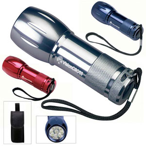 9 ultra bright white, long lasting, energy efficient, bulbs. Silver, blue, red. Laser engraved. Gift box included. Optional pouch with belt loop + .60 cents. Sale till 4/30/15 Qty Price SetUp Ship Total 50 $5.10 $50.00 $15.00 $319.88 100 $4.89 $50.00 $30.00 $569.29 250 $4.79 $50.00 $75.00 $1322.65 1000 $4.59 $50.00 $300.00 $4939.13 Mini Aluminum LED Flashlight 3 AAA batteries