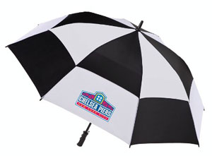 Fiberglass shaft. Push button open. Rubber handle. Qty Price SetUp Ship Total 25 $25.14 $50.00 $9.00 $687.40 50 $23.98 $50.00 $36.00 $1285.14 100 $22.82 $50.00 $81.00 $2413.19 200 $21.67 $50.00 $162.00 $4546.39 Totes Stormbeater Golf Umbrella, 60" arc, Windproof