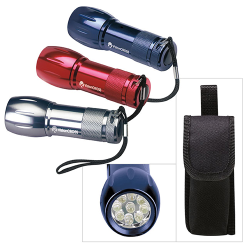 9 ultra bright white, long lasting, energy efficient, bulbs. Silver, blue, red. Laser engraved. Gift box included. Optional pouch with belt loop + .60 cents. Sale till 4/30/15