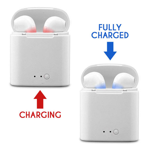 hands free calling & stereo sound. Wireless to 40', 3 hour battery, charging case, tuck box. Your 1 color imprint included.
