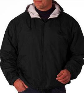 Jacket, nylon, fleece lined, hood, youth/ adult. Printed.