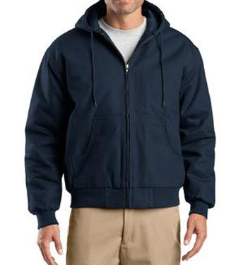 Rib knit cuffs & waistband, hand warmer pockets, Navy, black, duck brown. Embroidered.Qty Price SetUp Ship Total 24 $54.49 $30.00 $24.00 $1361.77 50 $52.54 $30.00 $50.00 $2706.86 100 $50.59 $30.00 $100.00 $5189.10 300 $48.65 $30.00 $300.00 $14925.66 CornerStone - Duck Cloth Hooded Work Jacket