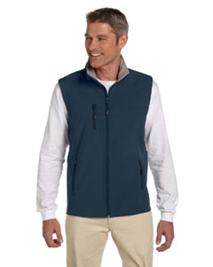 96% polyester, 4% spandex bonded to 100% polyester microfleece. 1000 mm waterproof rating. Wind- and water-resistant. Black, navy, red. Qty Price SetUp Ship Total 18 $44.95 $30.00 $10.00 $849.10 50 $43.85 $30.00 $25.00 $2247.48 100 $41.63 $30.00 $50.00 $4242.99 300 $40.53 $30.00 $150.00 $12339.75 Devon & Jones Men's Soft Shell Vest. Embroidered