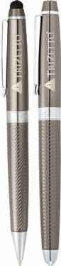 Ballpoint stylus & rollerball, premium cartridge, brown leather Cutter Buck gift/carry pouch Qty Price SetUp Ship Total 12 $32.69 $55.00 $15.00 $462.32 50 $31.69 $55.00 $25.00 $1664.68 100 $30.69 $55.00 $45.00 $3169.43 200 $29.69 $55.00 $90.00 $6082.00 Cutter & Buck Pacific Stylus Pen Set