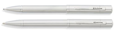 1 line of laser engraving, gift box Qty Price SetUp Ship Total 50 $15.99 $50.00 $20.00 $869.50 100 $15.50 $50.00 $30.00 $1630.00 250 $14.99 $50.00 $100.00 $3898.55 500 $12.99 $50.00 $200.00 $6745.28 Greenwich Satin Chrome Ballpoint Pen & Pencil Set