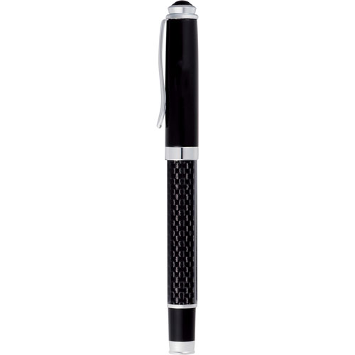 Gloss black upper, carbon fiber on lower barrel. Chrome accents. Premium ink. Gift box.
