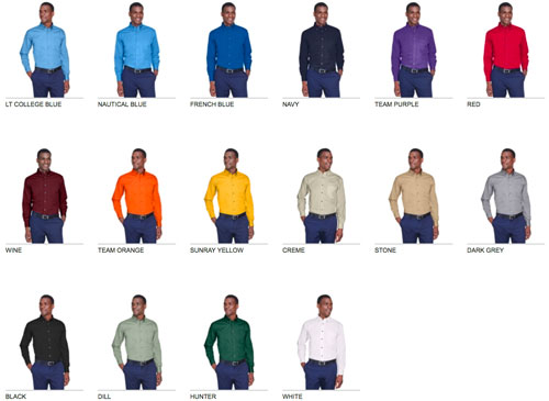 55% cotton, 45% polyester twill, BLACK, CREME, DARK GREY, DILL, FRENCH BLUE, HUNTER, LT COLLEGE BLUE, NAUTICAL BLUE, NAVY, RED, XS-6XL