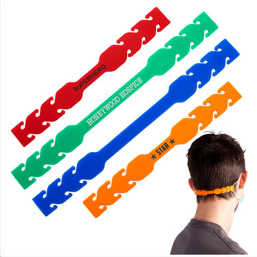 10-12 business day turnaroundQty Price SetUp Ship Total 500 $0.68 $0.00 $25.00 $362.50 1000 $0.64 $0.00 $50.00 $687.50 3000 $0.60 $0.00 $75.00 $1875.00 5000 $0.56 $0.00 $110.00 $2922.50 100% Silicone Ear Saver, Adjustable. Small or large