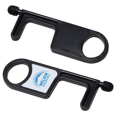 Use to Open Doors & Press Touch Screens. Press Elevator Buttons, ATM Buttons, etc. Handle Can Be Used to Hold Grocery Bags. Antibacterial Applied In Production. Black with Black, Blue, Red, White. Qty Price SetUp Ship Total 250 $1.21 $55.00 $15.00 $372.40 500 $1.13 $55.00 $25.00 $647.00 1000 $1.05 $55.00 $45.00 $1149.96 2500 $1.01 $55.00 $125.00 $2715.75 Antibacterial Door Opener Stylus