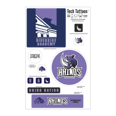 Ultra removable with durable full color digital imprint. Qty Price SetUp Ship Total 500 $0.99 $325.00 $10.00 $830.43 1000 $0.69 $325.00 $12.00 $1028.65 2500 $0.55 $325.00 $25.00 $1727.34 5000 $0.45 $325.00 $50.00 $2621.40 Tech Tattoos, 7" x 11", Stickers for electronic devices