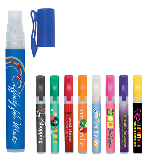 Lightly scented, push top spray. Translucent: Black, Blue, Clear, Green, Orange, Red, Purple, Pink or Yellow Cap.